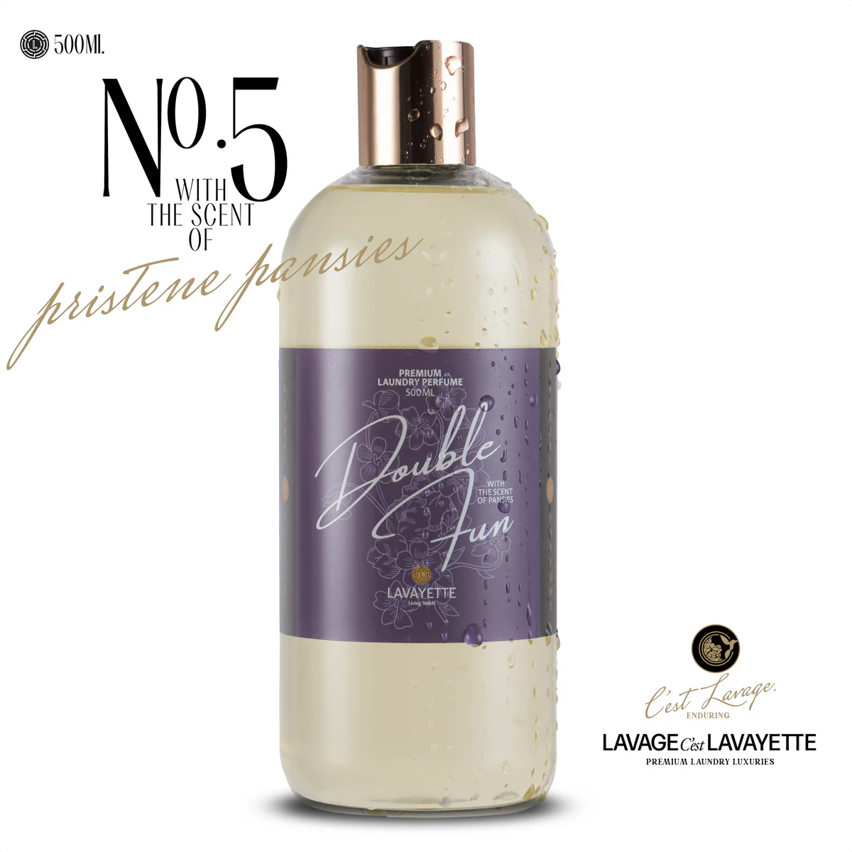 Lavayette’s No.5 Double Fun vangt de flirterige, poederige geur van viooltjes in een unieke samenstelling. De lichte, zoete tonen worden verrijkt met aardse en subtiel peperige accenten, dankzij de extracten van viooltjesblaadjes.
